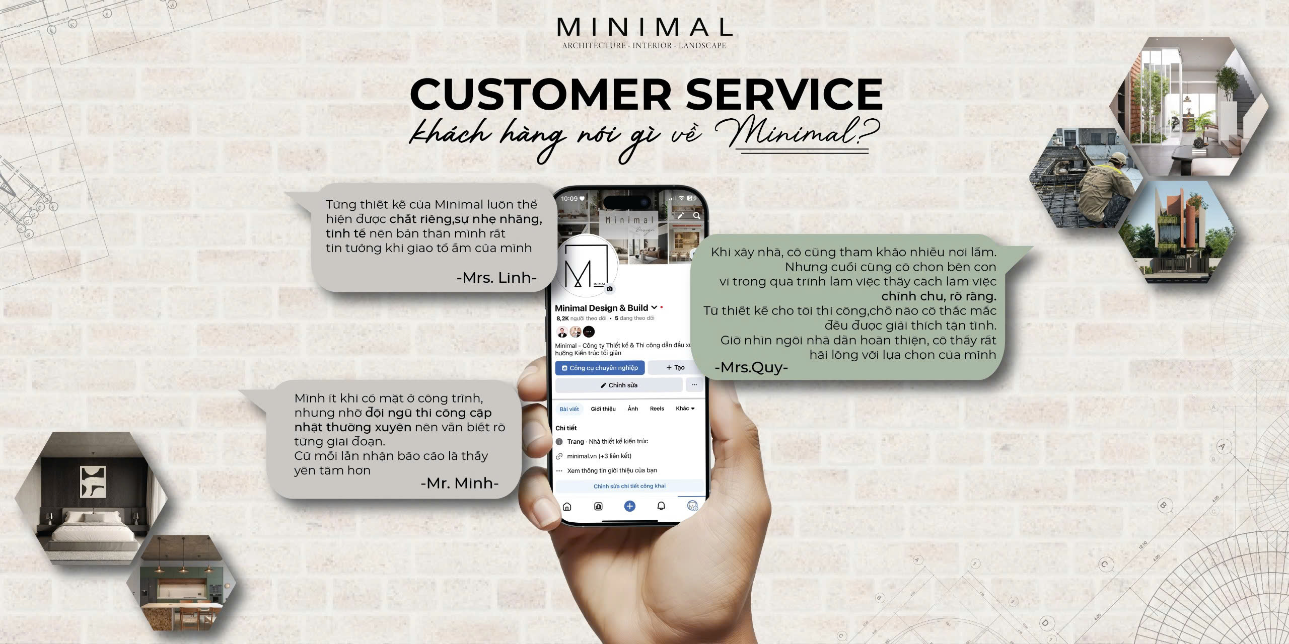 Điều đặc biệt quan trọng đối với chúng tôi không chỉ là việc thiết kế một công trình ấn tượng, mà còn là cam kết mang đến cho khách hàng những trải nghiệm tuyệt vời nhất và sự hài lòng vượt trội. Với niềm đam mê không ngừng nghỉ, Minimal khát khao vượt qua mọi kỳ vọng, đồng thời đem đến những giải pháp sáng tạo và đột phá, nhằm đem lại sự hài lòng hoàn hảo cho khách hàng của chúng tôi.